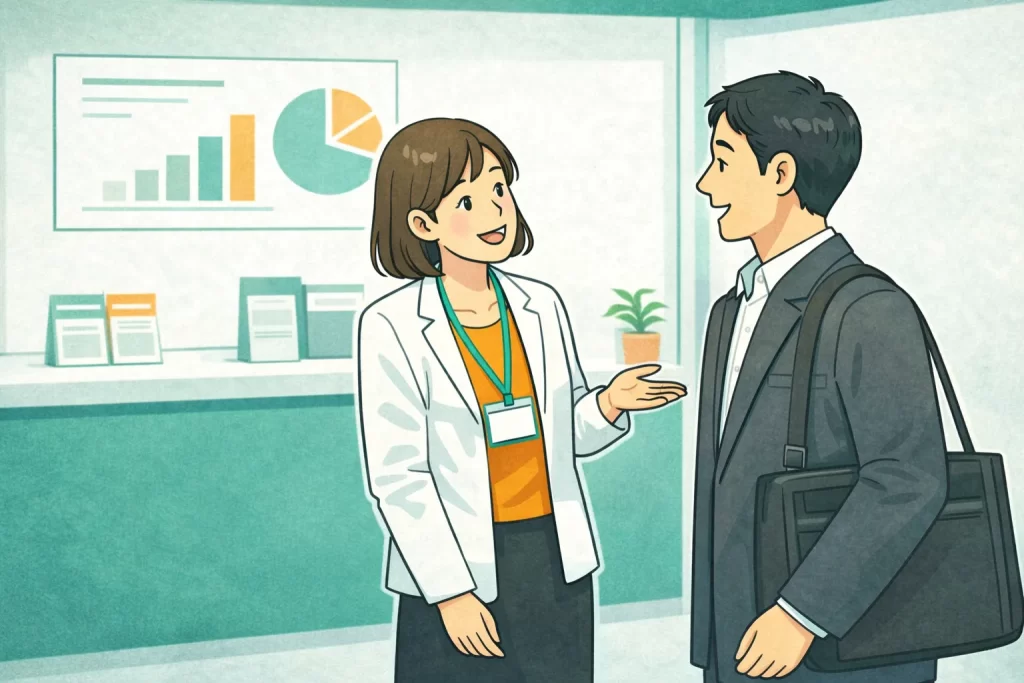 A: 展示会の声かけに慣れている人でも、最初は緊張するものです。「売り込む」のではなく「目の前の人を理解しよう」という気持ちで臨むと、会話のハードルが下がります。